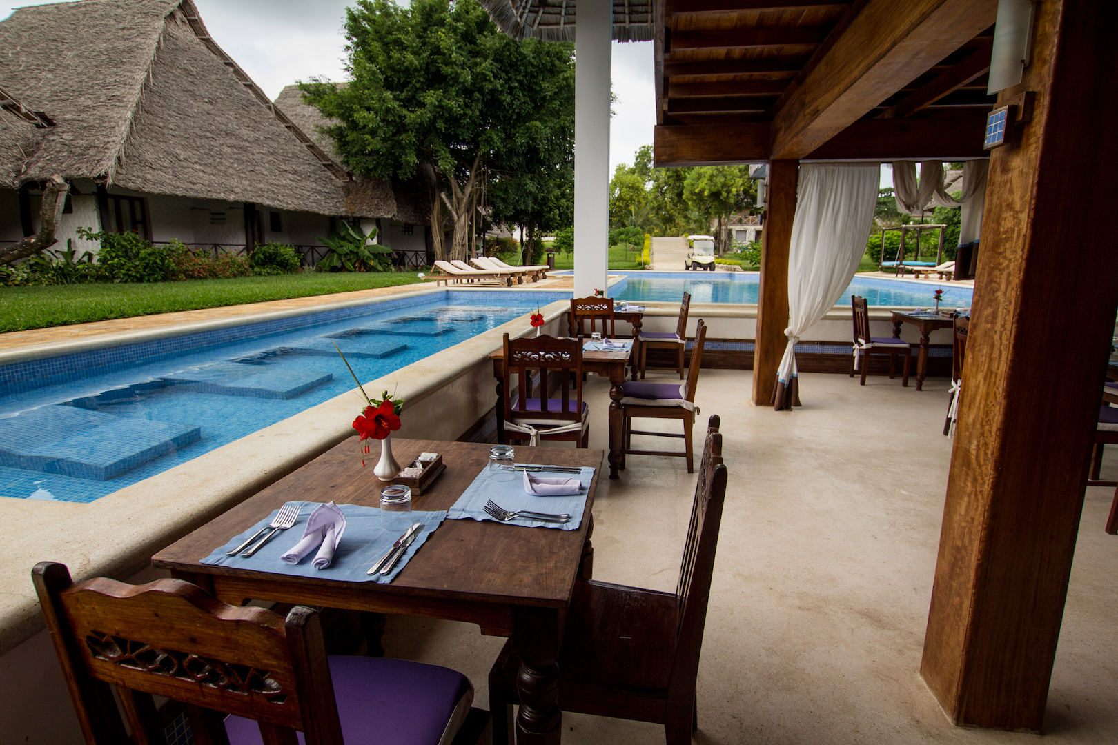 Il Karaffu beach Resort è uno degli alberghi piu’ famosi nell’isola di Zanzibar. Da sempre si è distinto per la grande attenzione verso le esigenze dei clienti e per la sua capacità di apporre migliorie e modifiche alla propria struttura. Questo lo rende un resort “storico” e sempre nuovo allo stesso tempo. Si trova a Michamwi, sulla costa sud-est dell’isola a circa un’ora e 15 minuti dall’aeroporto. La spiaggia così come il mare sono stupendi e la struttura ha inoltre costruito un lungo camminamento di 200 metri nell’acqua, così da poter fare accedere i clienti in una piscina naturale che si crea quando la marea si abbassa.